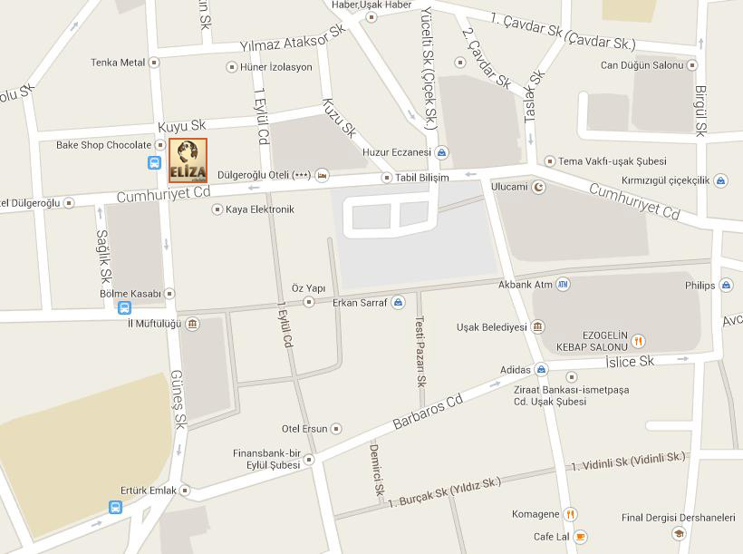 Özdemir MahallesiCumhuriyet Caddesi No: 42/B UŞAK (Dülgeroğlu Oteli Sırası, Gümüşler Giyim Yanı)